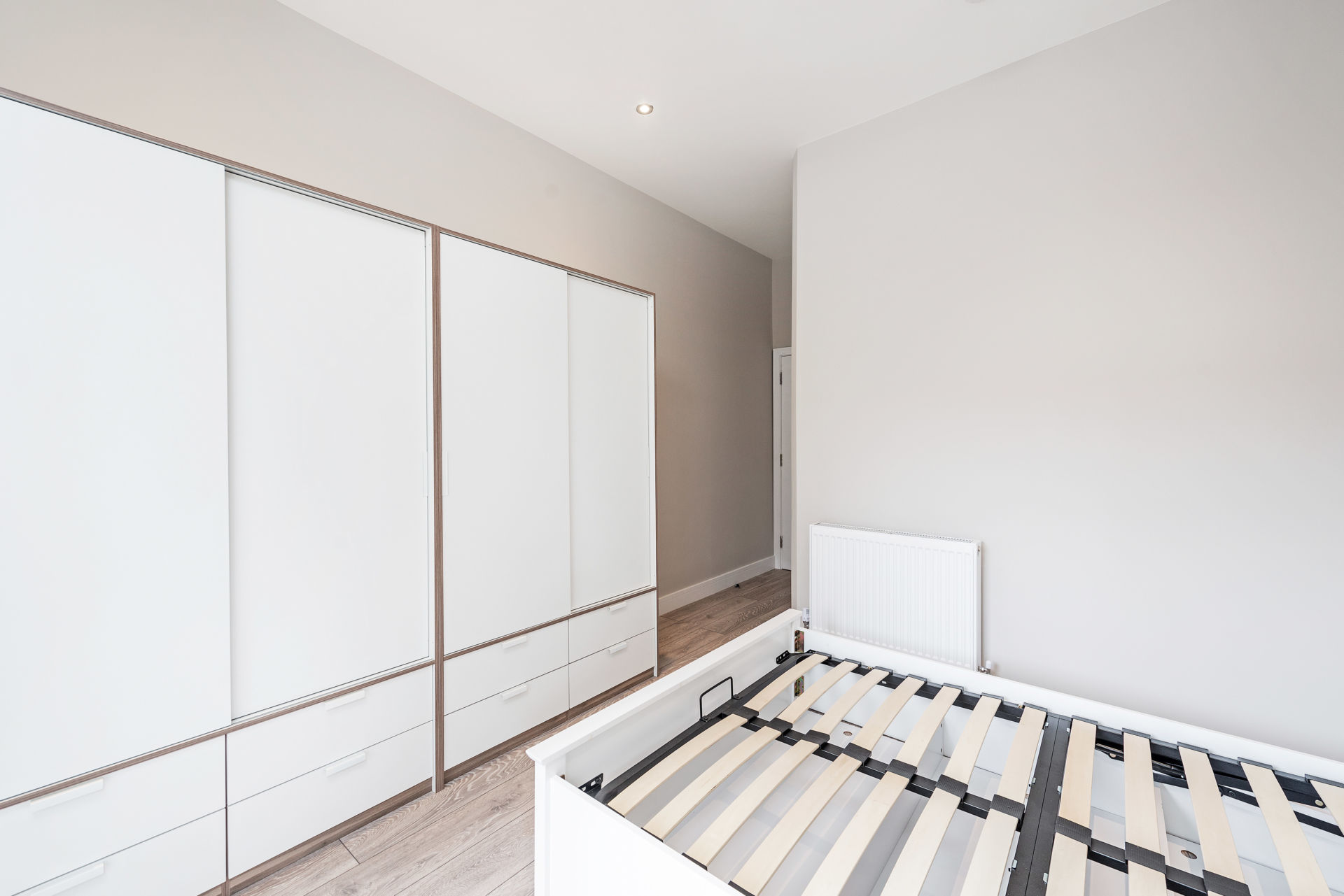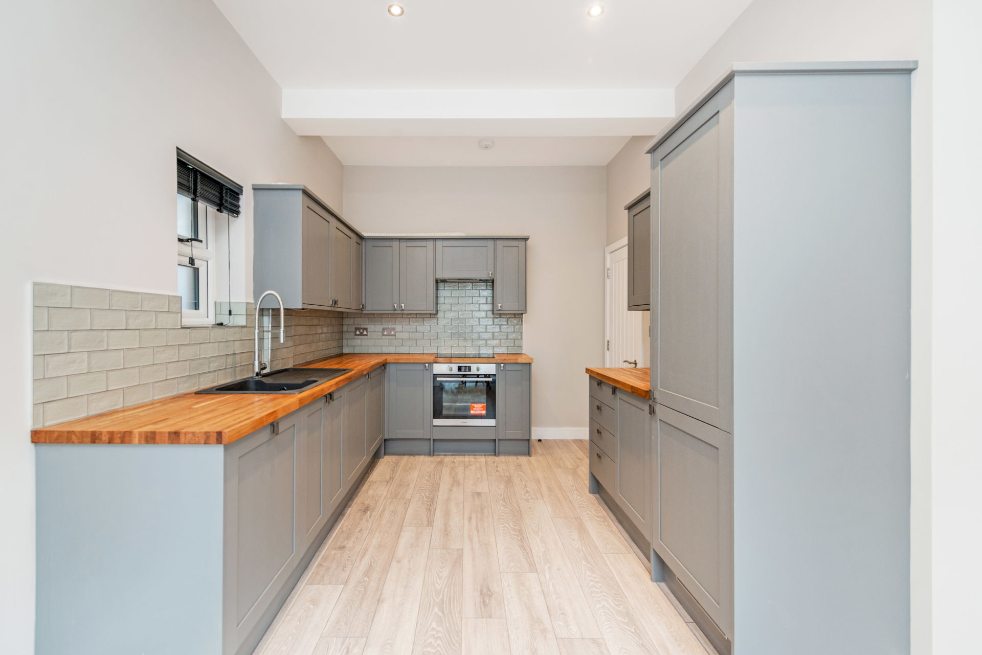 The design ambition was to achieve a minimalist aesthetic while still introducing warmth and balance. During second fix, concrete-effect finishes were introduced to support an industrial-inspired theme, paired with neutral tones to create a refined yet practical living space.
